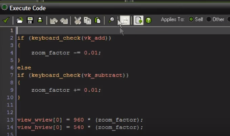 Today I began to create zooming in and zooming out in our game. I'm trying to use the scroll wheel for it because it seems easier to use. It seems that most of the code used for zooming is used with plus or minus. I'm going to have to find what the mouse wheel is in game maker. I did find some code to use for zooming but while messing around with it. It didn't really work maybe because the values might not be right for the screen size. Our screen size is 700 by 1600 so I messed around with the values. With the code it starts out with a zoom factor and that isn't and established code in game maker so that might be the problem. I will continue to work on this for the next day try to fix this but i might have to look up some other code for it.